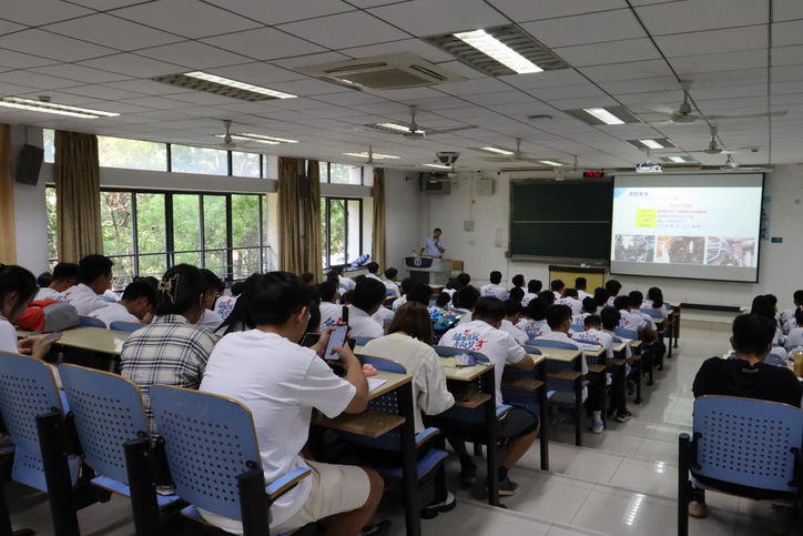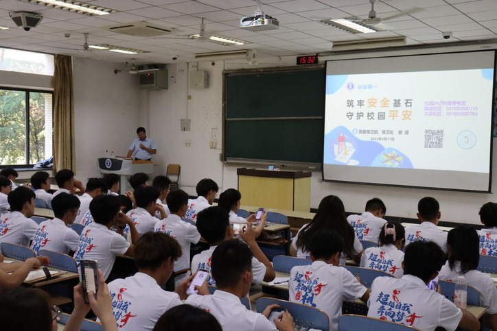 翟望老师以“筑牢安全基石,守护校园平安”为主题,从消防、交通、人身财产等方面为同学们详细详细介绍了校园生活中可能遇到的安全问题或存在的安全隐患,并结合近期校内外案例,重点对防范电信诈骗、非法传教、校园网贷、防盗、消防安全等进行了讲解。最后,曹杏利老师进行总结,她希望同学们在认真学习的基础上,切实增强安全意识,以实际行动共同维护校园安全环境。