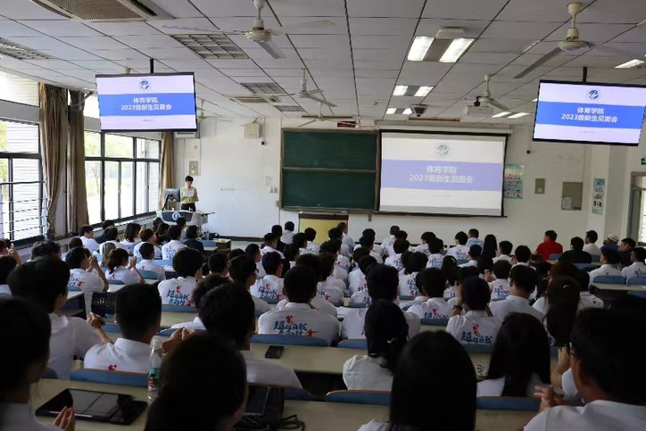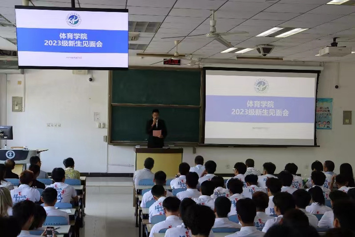 学院2020届本科毕业生、2021级硕士研究生徐海超,运动训练2023-1班胡睿哲分别作为老生、新生代表发言。