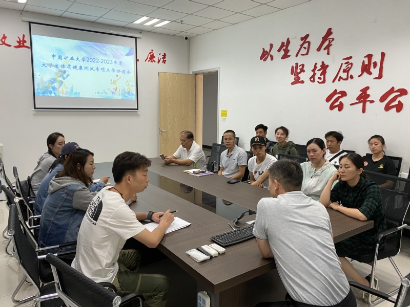 2022年9月16日上午,太阳成集团122ccvip在体育馆B102会议室召开太阳成集团2022-2023年度老员工体质健康测试专项工作协调会。公司科研副经理王军利、体育科学实验中心全体工作人员及参与此次体质测试工作的各位老师参加了本次会议,会议由实验中心副主任白剑飞主持。