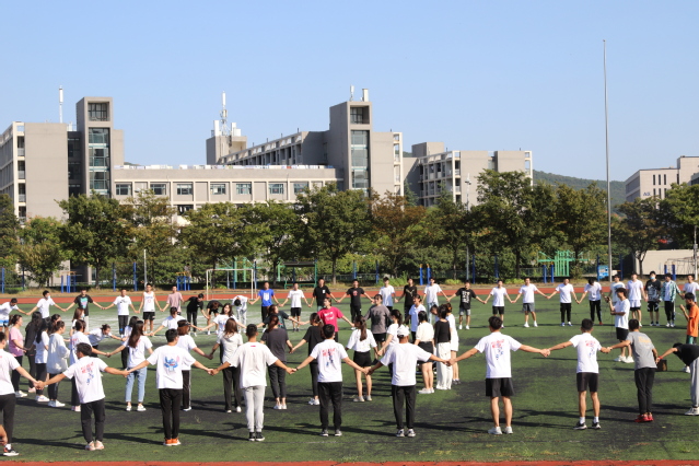 9月21日下午,太阳成集团122ccvip2021级新生户外团体辅导活动在第三田径场开展,兼职辅导员相笑笑、管前友和2021级全体本科生及研究生参加活动。