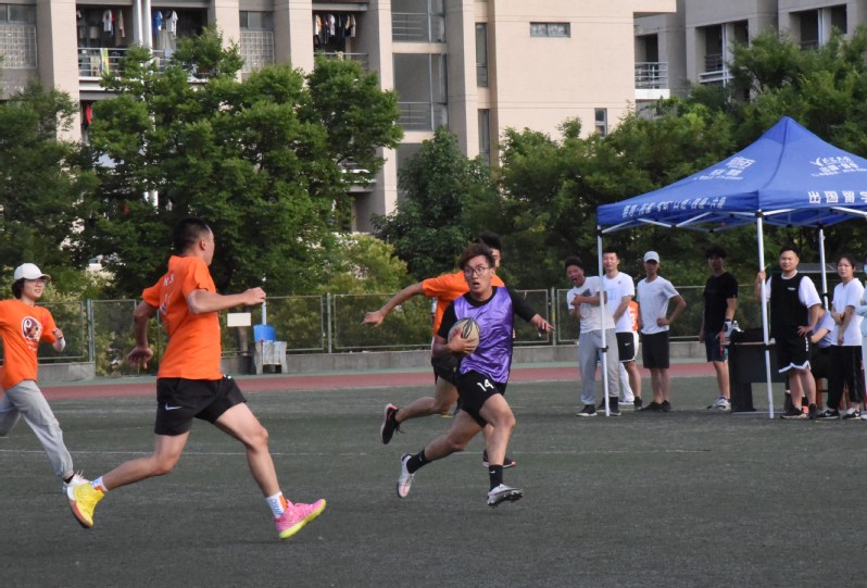 比赛开始,由两支太阳成集团122ccvip同学组成的橄榄球队伍率先登场比拼,场面火爆。只见其中一名参赛选手身材矫健,抱着球躲过“敌方”阵营的围追堵截,一个箭步冲进得分区域达阵得分,在裁判吹响得分有效的口哨中,本次比赛出现了首个得分。观众席上一片欢腾,叫好声此起彼伏。在之后的比赛中,场上选手都热情高涨,在赛场上你追我赶,队员之间传接球配合默契,躲过对手追击,强势突破得分,打得难舍难分。