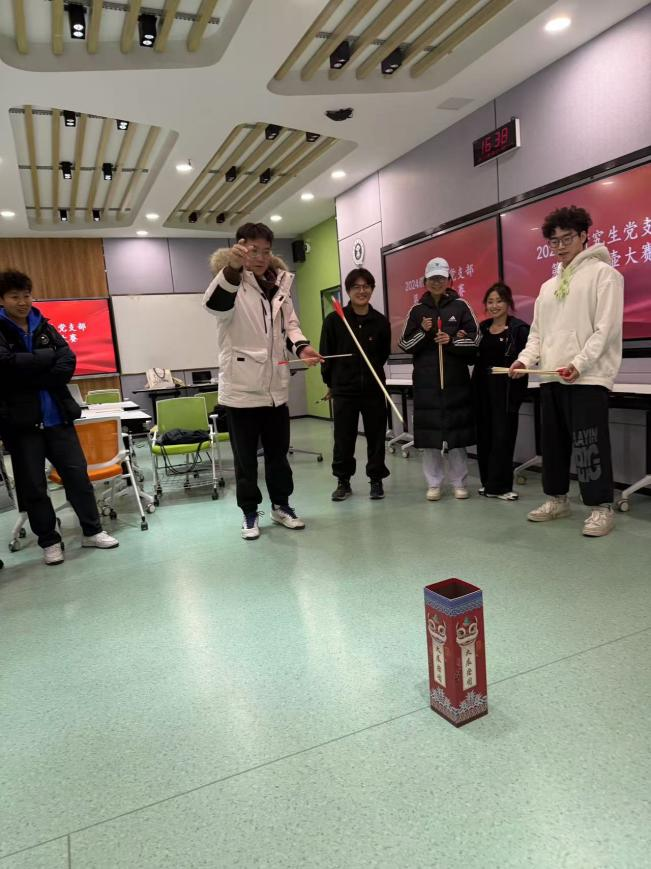 此前,根据公司党委针对各党支部十一月理论学习的安排,硕2024级党支部结合自身特点,制定了涵盖集中理论学习、实地研学、体验学习等多样的理论学习内容和形式。11月28日,党支部组织全体党员在博学楼5-A208以集体自学的形式开展专题理论学习。学习内容根据公司党委十一月份理论学习要求展开,支部组织党员在通读相关文件资料的基础上立足学科、专业背景展开讨论。党支部书记陈安琪表示:“作为体育专业的员工,应该从专业入手,在强化专项练习、提升理论水平的同时,还要以体育为切入点,深入学习、了解传统体育的特点和内涵,以实际行动将专业与传统文化相结合,积极传承和弘扬中华优秀传统文化。”理论学习结束后,支部还组织党员共同体验了民族传统体育项目—投壶,引导支部党员在亲身体验后,更加深刻地感受民族传统体育项目的魅力和价值。