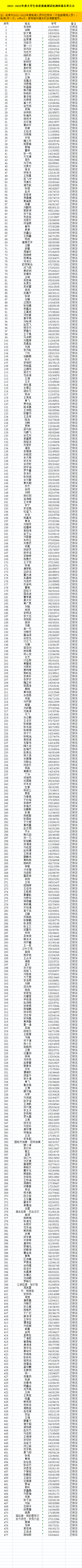 2021-2022年度体质健康测试申请免测人员名单公示,公示时间为2021年10月25日至11月1日,如有遗漏请在公示期内与管理员联系,公示期过将不予处理。联系人:黄天池,电话:16761705000。