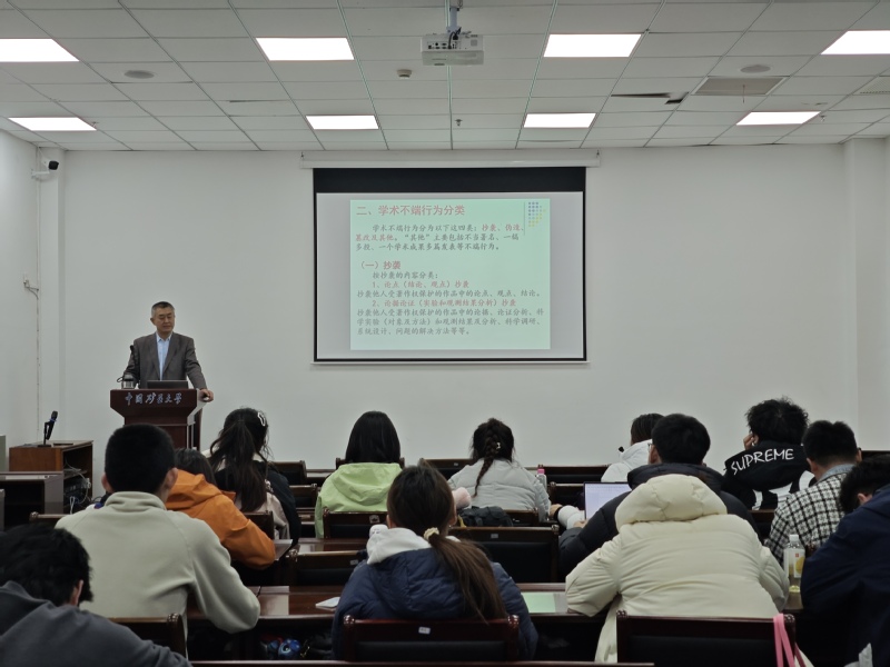会上,项立敏教授首先列举了几种典型的学术不端行为,比如捏造、篡改、剽窃、伪造学历或工作经历,以及抄袭、一稿多投等。接着,项立敏教授讲授了学术道德及学术规范的重要性。项教授强调:“学术规范与学术道德关乎学术诚信问题,作为学术研究者一生都要坚守学术基本规范,在论文格式、查重、论文抽检等方面一定要守牢学术道德红线,将严谨的学术态度贯穿始终。”