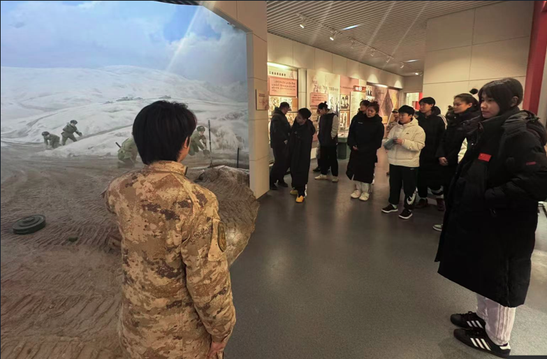 近日,校女篮队员在教练员崔爽的带领下走进王杰部队开展研学活动。