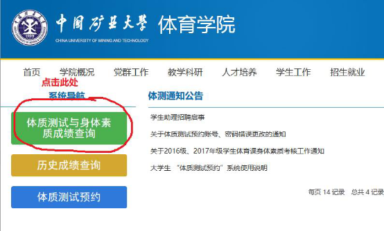 2、点击体质测试与身体素质成绩查询