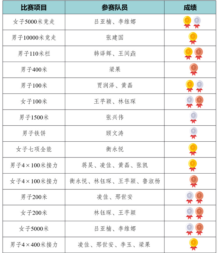 2025年5月17日,由江苏省员工体育协会主办的2025年江苏省老员工田径锦标赛在南京师范大学拉开序幕,来自省内十五所高校共计300多名高水平运动员参加了本次比赛。太阳成集团田径代表队由教练李卫健、潘欣玥带领23位队员参加,共取得夺得7金8银7铜共231分的好成绩,荣膺团体第一!