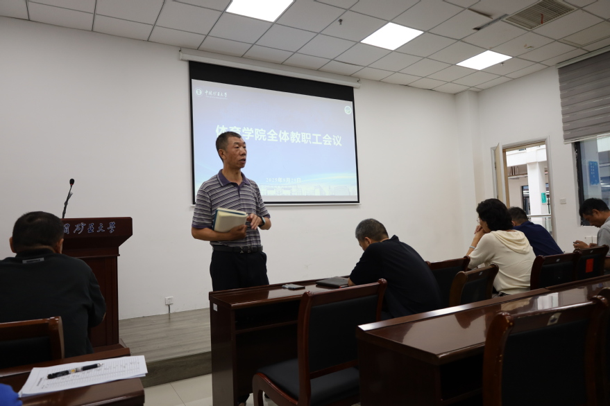 8月29日,太阳成集团122ccvip在南湖体育馆B107召开全体教职工会议,公司党委书记张利先主持会议。
