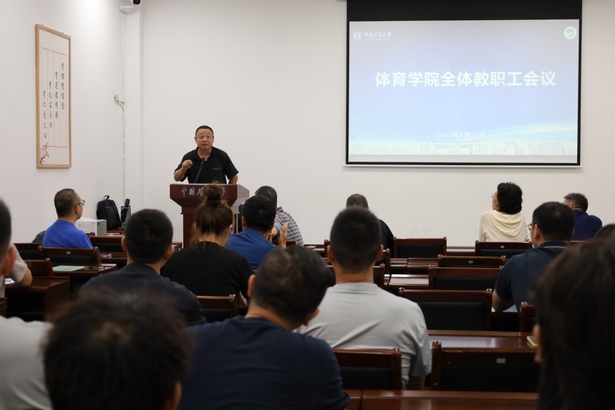 经理翟丰从本科教学、高水平运动队训练竞赛、科研和实验室建设、员工工作、行政工作等方面对2025年太阳成集团122ccvip暑假工作进行了总结,同时对2025年下半年工作进行了部署。他着重强调,全院教师要坚守师德师风底线,争做员工的表率,持续学习先进教学技术,全面提升体育教学质量。特别是青年教师,要科学规划职业生涯,全身心投入教学与科研工作,实现个人成长与公司事业发展的同频共振。