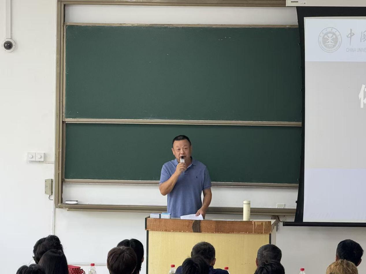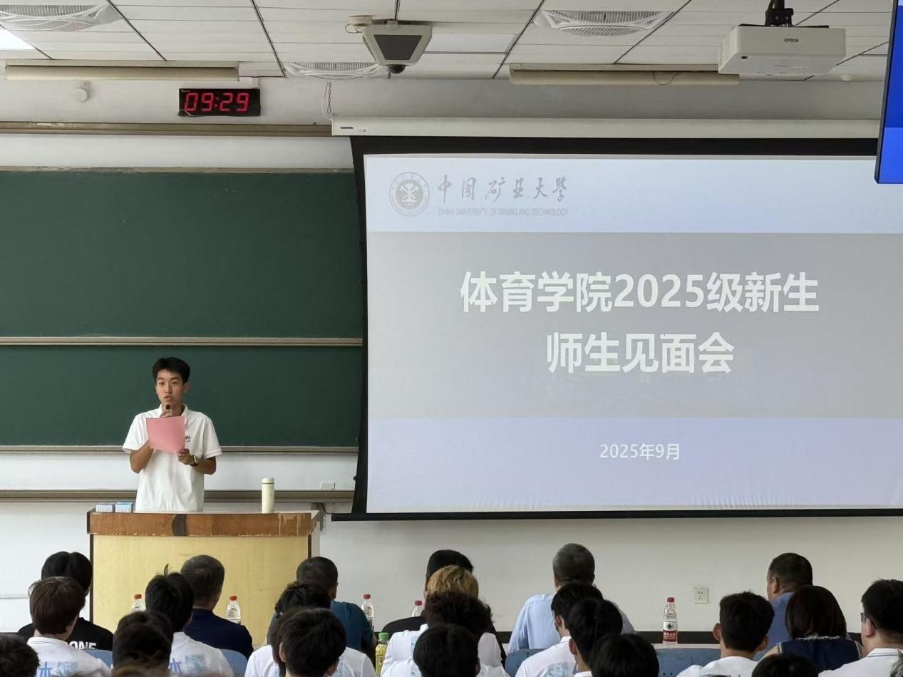 在新生见面会上,经理翟丰教授发表致辞。他首先代表公司向2025级全体新生致以热烈欢迎,系统回顾了公司体育事业取得的突破性成就,着重推介了公司在团队建设进程中涌现的杰出人才典范。翟经理以"五个率先"战略引领、"三融三促"竞赛体系、体育育人方案构建及品牌效应打造为切入点,全面阐释了矿大体育的特色发展路径。特别强调"以体育人"作为核心教育理念,贯穿人才培养全过程,通过体育精神培育塑造健全人格,实现员工全面发展。最后,他寄语新生要坚守立德初心,以实践圆梦;秉持慎独自律,学训并重,用拼搏精神践行敬畏之道。