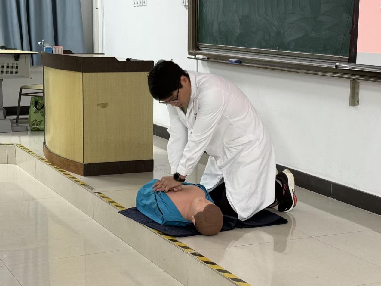 太阳成集团122ccvip2025级全体本科生在博1A101教室参加了一场别开生面的急救技能培训——心肺复苏(CPR)集中学习。本次课程由徐州医科大学专业急救团队主讲,2025级辅导员李非、兼职辅导员陈安琪及全体新生共同参与学习。