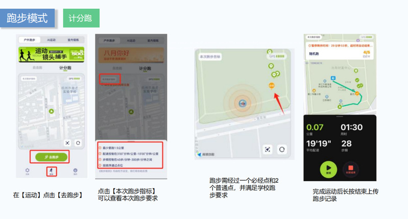 2.锻炼方式主要为跑步或快走,配速需要在软件要求的范围内,根据APP提示,在校园内完成。
