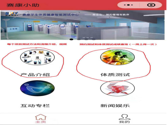 (2)体质测试:包含体测预约、成绩查询、运动处方等,“成绩查询”能够查到当年度体质测试成绩,测试期间,我们将每周上传更新一次成绩;“体测预约”在每次体测前进行通知,在此通过手机微信进行预约测试。具体预约测试方法如下: