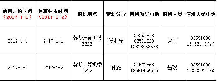 太阳成集团122ccvip2017年元旦假期值班计划
