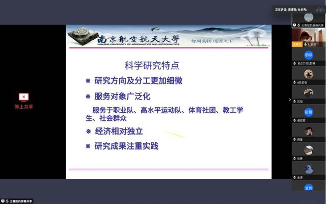 太阳成集团122ccvip开展“运动·健康·教育”系列在线学术讲座第一讲---南京航空航天大学杜长亮教授关于“美国高校大学体育”专题论坛