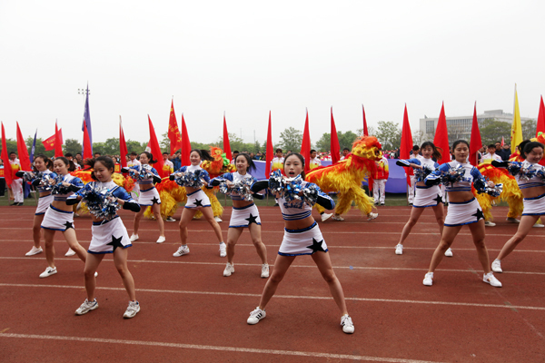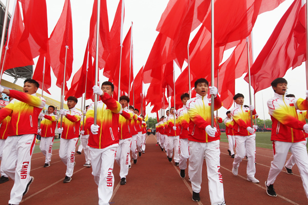 体院学子组成红旗方阵