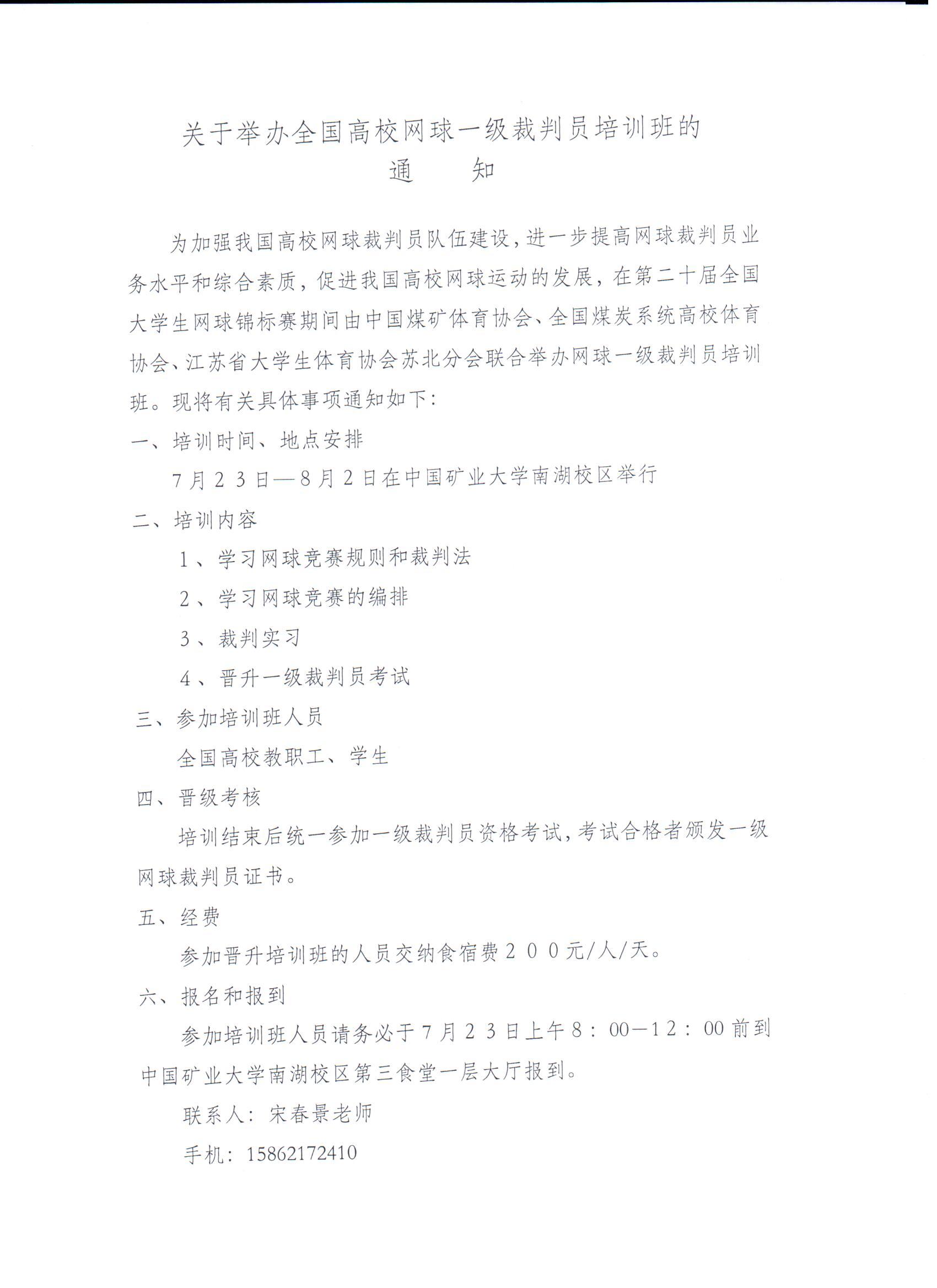 关于举办全国高校网球一级裁判员培训班的通知