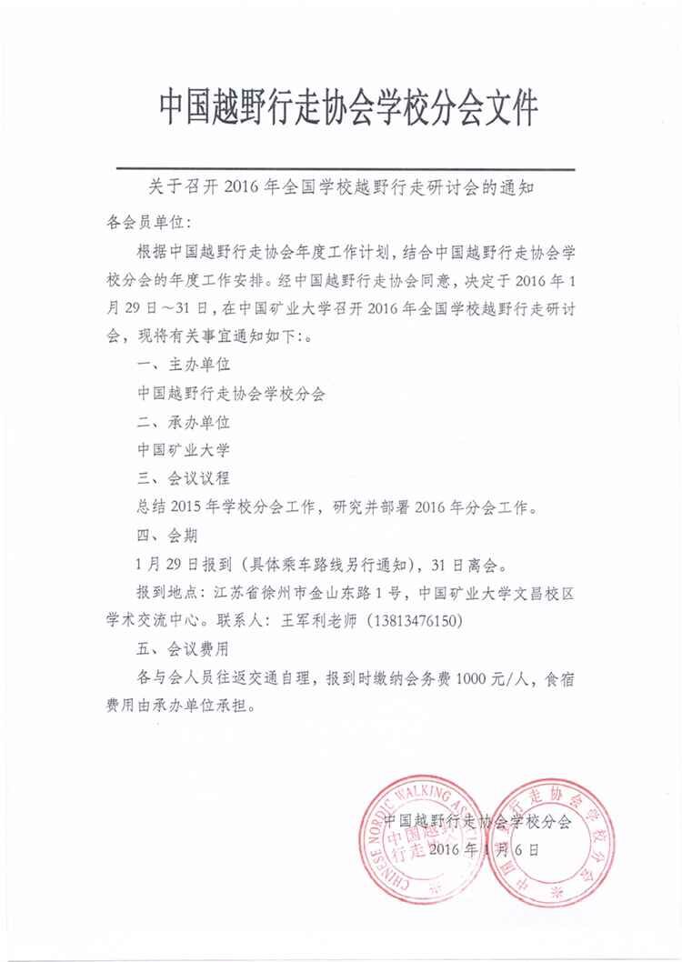 关于召开2016年全国公司越野行走研讨会的通知