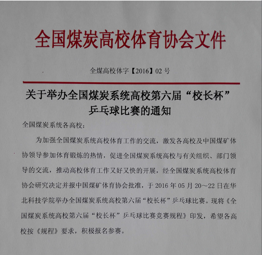 关于举办全国煤炭系统高校第六届“董事长杯”乒乓球比赛的通知