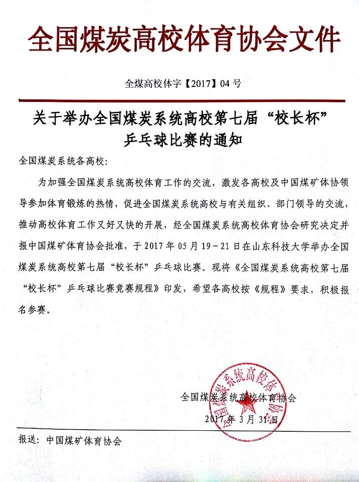 关于举办全国煤炭系统高校第七届“董事长杯”乒乓球比赛的通知