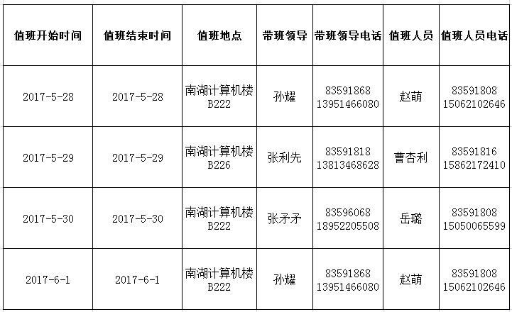太阳成集团122ccvip2017年端午节、校庆假期值班计划