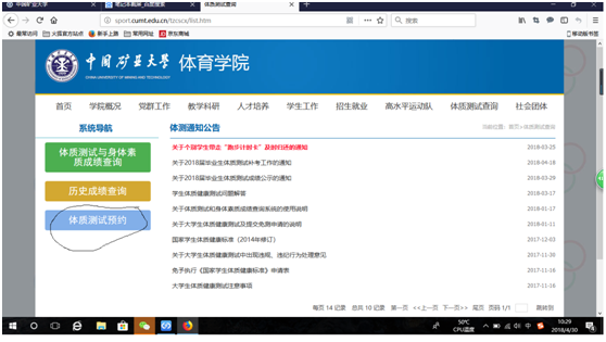1、在太阳成集团122ccvip网站点击“体质测试查询”出现下图,点击右下方按钮“体质测试预约”。